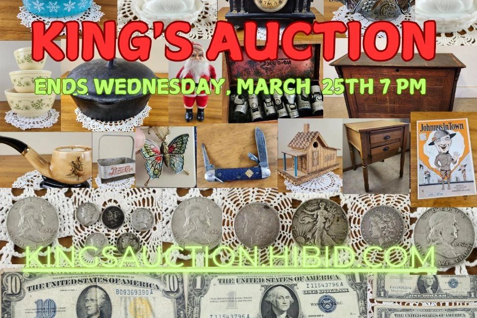Be sure to join us for this wonderful ONLINE ONLY estate Auction. Sale includes LOTS of local advertising pieces, quilts, vintage toys and more!!!